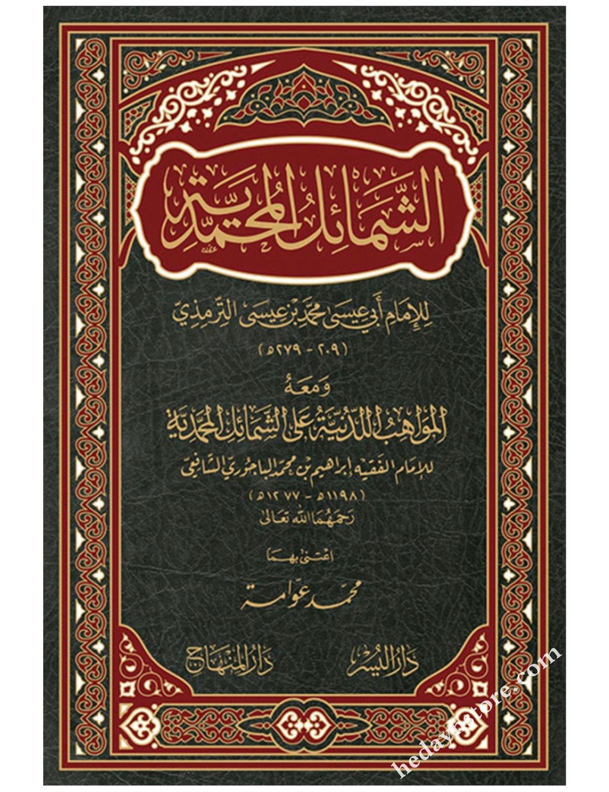 هو طبعة مميزة تجمع بين كتاب الإمام الترمذي الأصلي “الشمائل المحمدية” (الذي يجمع صفات النبي الخلقية والخلقية) وشرح العلامة الباجوري عليه “المواهب اللدنية”، ويتميز بتحقيق وتعليق من الشيخ محمد عوامة لضبط النصوص وتخريجها، مما يجعله مرجعًا شاملاً وموثوقًا لصفات النبي وأخلاقه وأحاديثه، وهو مجلد واحد فاخر يقع في حوالي 672 صفحة، ويعد من أحدث الطبعات التي صدرت في السنوات الأخيرة.